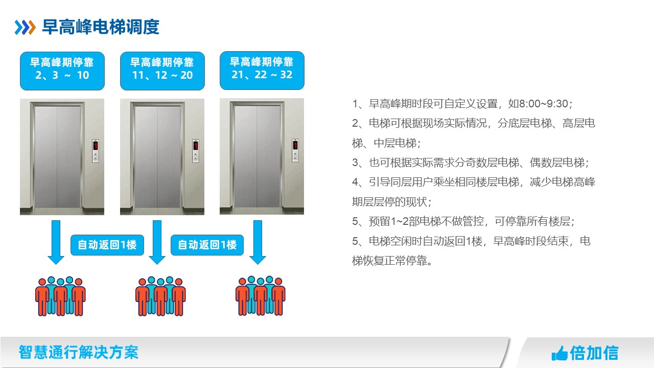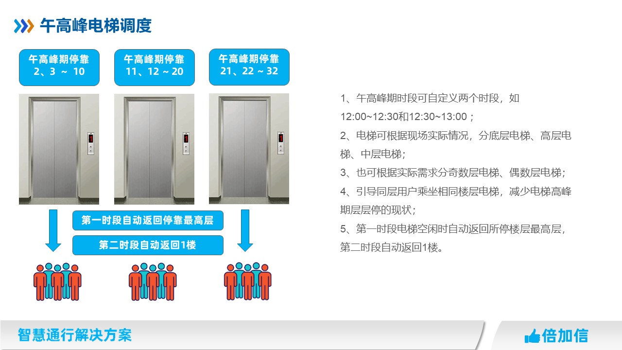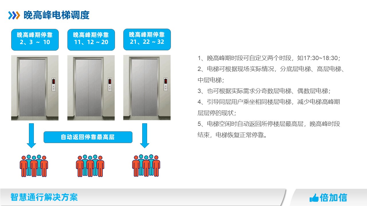 4、引導(dǎo)同層用戶乘坐相同樓層電梯,減少電梯高峰期層層停的現(xiàn)狀;