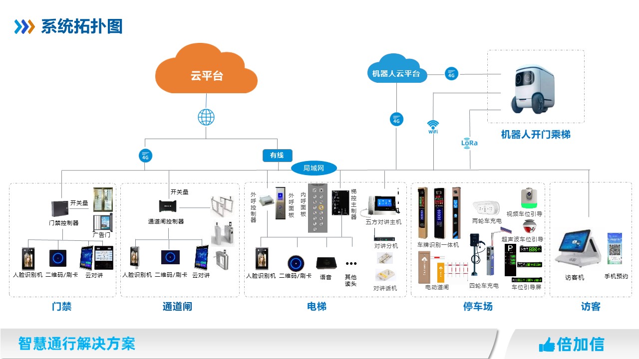 機(jī)器人通過(guò)WIFI通訊、4G通訊、Lora通訊等,發(fā)送指令開門、過(guò)閘機(jī)、招梯、乘梯等。