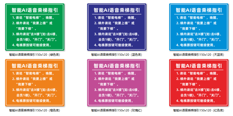 語音乘梯指引背景色和文字可以定制修改,但建議簡(jiǎn)潔,內(nèi)容太多乘梯人沒有耐心全部看完。