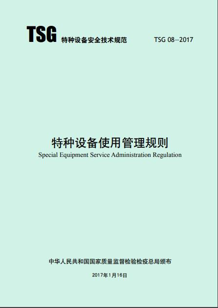 《特種設(shè)備使用管理規(guī)則 TSG 08—2017》國家質(zhì)量監(jiān)督檢驗(yàn)檢疫總局頒布
