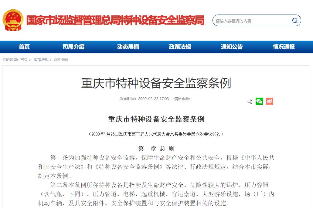《重慶市特種設備安全監(jiān)察條例》2008年9月26日重慶市第三屆人民代表大會常務委員會第六次會議通過