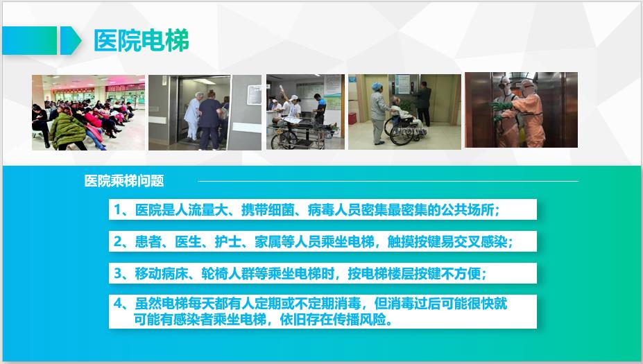 (2)患者、醫(yī)生、護士、家屬等人員乘坐電梯,觸摸按鍵易交叉感染;